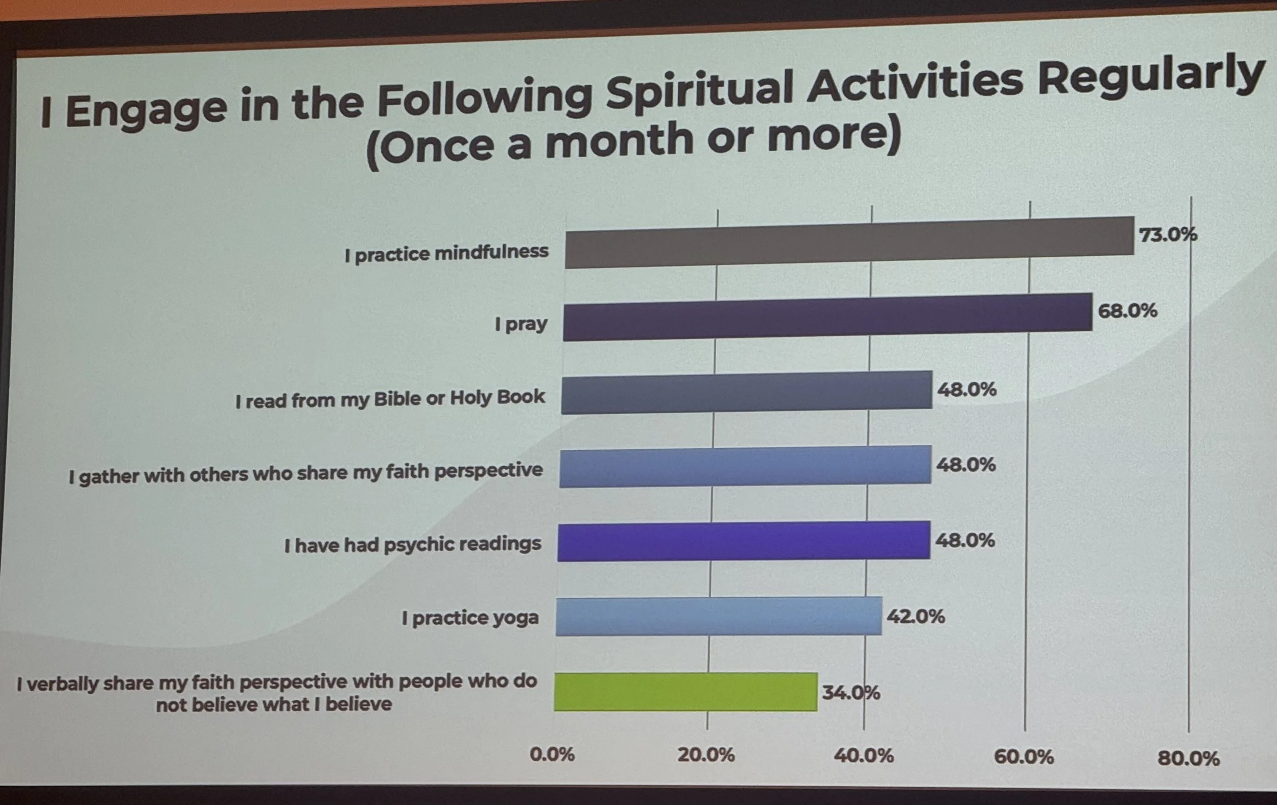 Holly attended an evangelism conference at Wheaton College, Billy Graham Center, where missionaries and pastors met to discuss how to reach people with the gospel. Barna research expert David Kinnaman shared that people are more spiritually open than we realize, especially since COVID. When talking about Gen Z (high school and college age), they identify as quite spiritual, as the chart shows above.